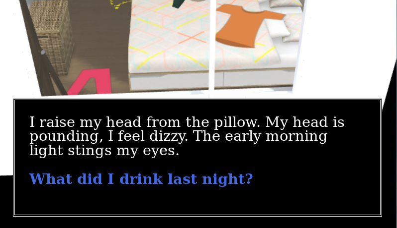 You can play it right now, in your browser with no download. It is very short, after all I only had a week to make it: I wake up with Anxiety Test Game Engine for integrating A-Frame with Twinery. Guide the character around to answer the door.ada-game-engine.adarose.dev
