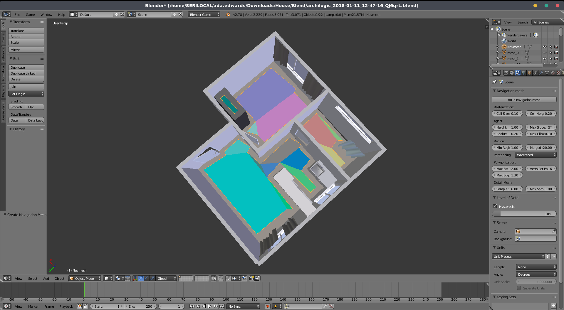 To generate the Navmesh for this scene I first downloaded it as an OBJ model from the Archilogic website. Unfortunately it did not download any of the furniture models with it. But it would do.