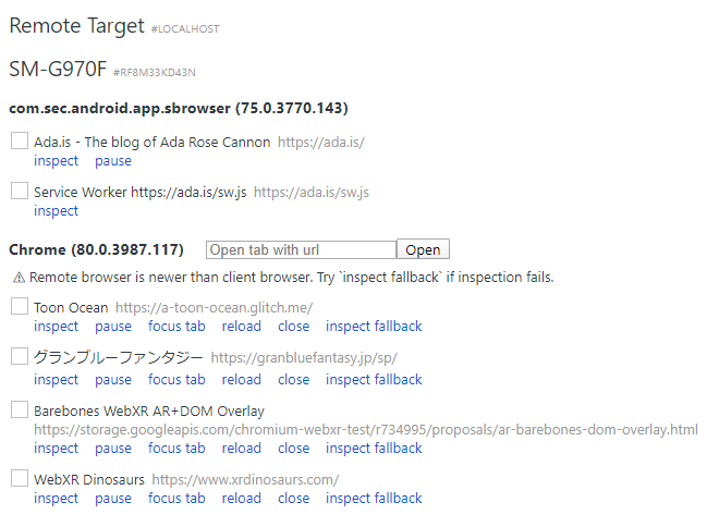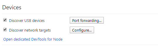 On the desktop, open a Chromium browser (such as Chrome or Edge) and navigate to chrome://inspect. You should see a list of available web pages to debug. Press inspect on the page you want to debug.