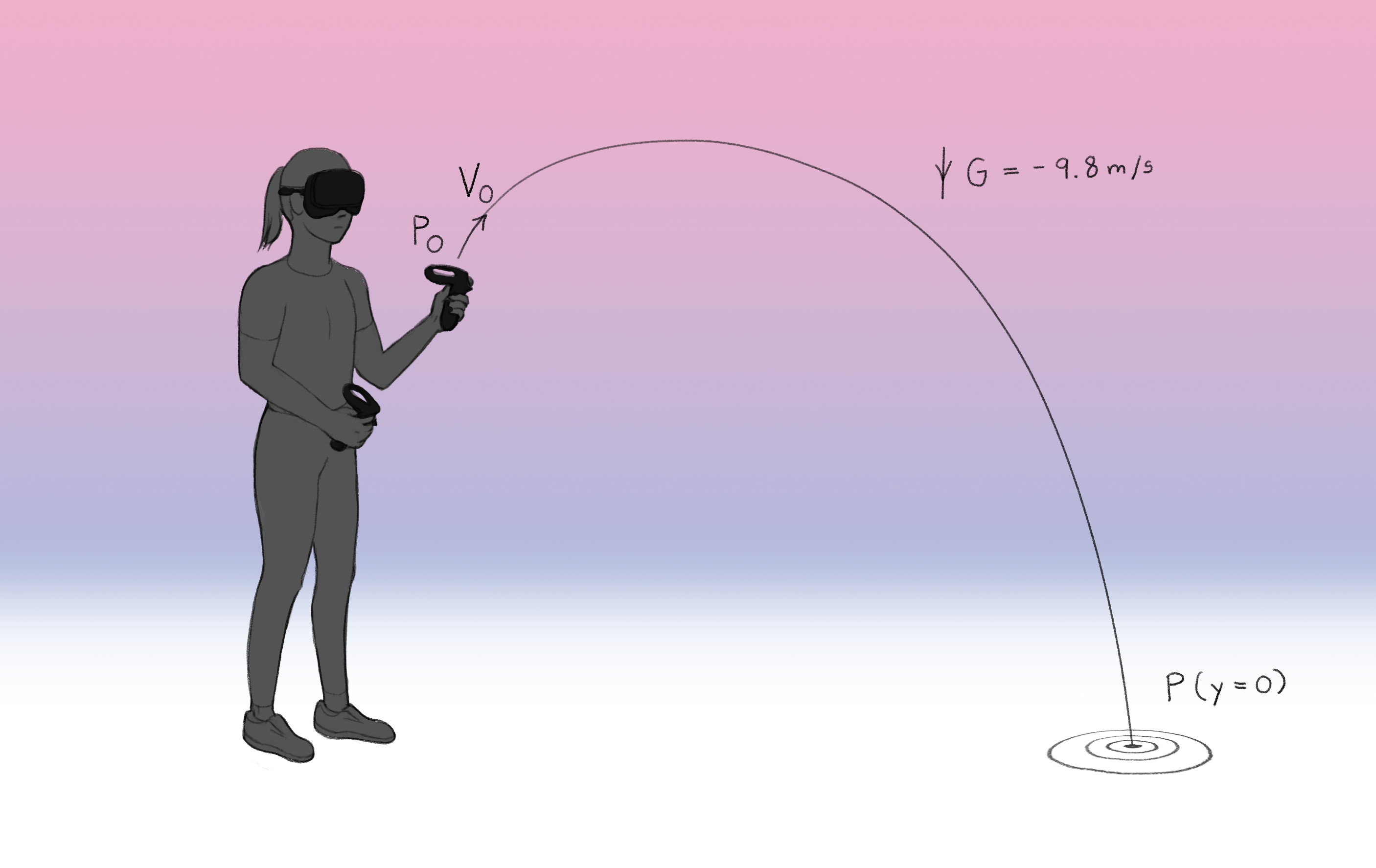 This model imagines that the controller is throwing out a ball, and where the ball lands is where we teleport to. This is a very common method of VR locomotion you may have experienced if you’ve used a VR headset before.