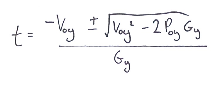 *const* t = (-v.y + Math.sqrt(v.y**2 - 2*p.y*g.y))/g.y;